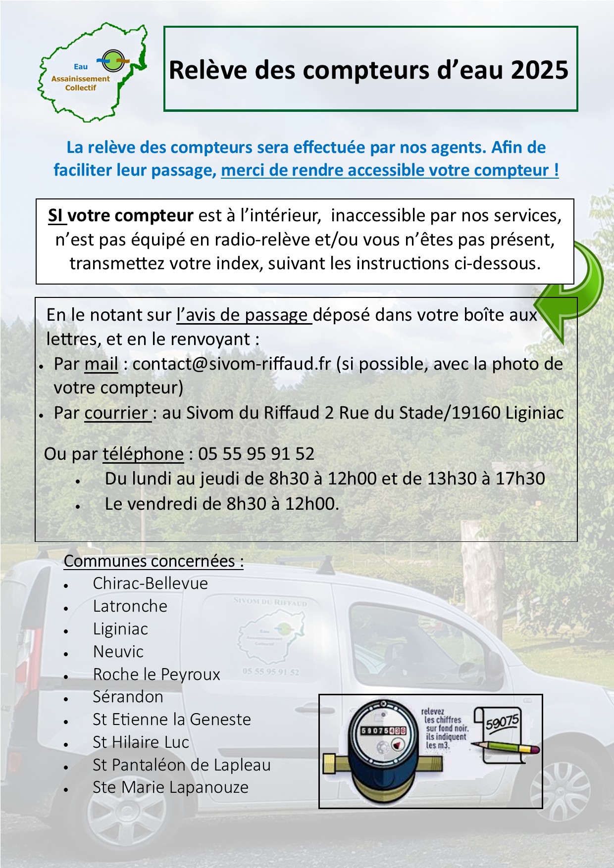 LE SIVOM DU RIFFAUD RELEVE LES COMPTEURS D'EAU (VOIR CI-DESSOUS)